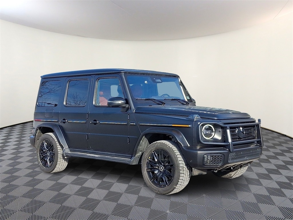 Engine: 3L I6 Turbo, Transmission: 9-Speed Automatic, Mileage: 25,181 miles miles, MPG Range: 17/ mpg, Exterior Color: Manufaktur Nigh, Interior Color: Manufaktur Bengal Red / B,Stock #: Q255463P, VIN: W1NWH1AB4SX025463, Comments: CARFAX One-Owner. Clean CARFAX. 2025 Mercedes-Benz G-Class G 550 4MATIC® 18 Speakers, 4-Wheel Disc Brakes, ABS brakes, Adaptive suspension, Air Conditioning, Alloy wheels, AM/FM radio: SiriusXM, Apple CarPlay®/Android Auto®, Auto High-beam Headlights, Auto tilt-away steering wheel, Auto-dimming door mirrors, Auto-dimming Rear-View mirror, Automatic temperature control, Bodyside moldings, Brake assist, Bumpers: body-color, Child-Seat-Sensing Airbag, Compass, Delay-off headlights, Driver door bin, Driver vanity mirror, Dual front impact airbags, Dual front side impact airbags, Electronic Stability Control, Emergency communication system: Mercedes-Benz Emergency Call Service, Exterior Parking Camera Rear, Front anti-roll bar, Front Bucket Seats, Front Center Armrest, Front dual zone A/C, Front reading lights, Front wheel independent suspension, Garage door transmitter: HomeLink, Genuine wood console insert, Genuine wood dashboard insert, Genuine wood door panel insert, Head restraints memory, Headlight cleaning, Heated door mirrors, Heated front seats, Heated rear seats, Heated steering wheel, Illuminated entry, Knee airbag, Leather steering wheel, Leather Upholstery, Low tire pressure warning, Memory seat, Navigation system: MBUX, Occupant sensing airbag, Outside temperature display, Overhead airbag, Overhead console, Panic alarm, Passenger door bin, Passenger vanity mirror, Power adjustable front head restraints, Power door mirrors, Power driver seat, Power Heated Front Seats, Power moonroof, Power passenger seat, Power steering, Power windows, Radio data system, Radio: Burmester® 3D Surround Sound System, Rain sensing wipers, Rear air conditioning, Rear anti-roll bar, Rear fog lights, Rear reading lights, Rear seat center armrest, Rear side impact airbag, Rear window defroster, Rear window wiper, Remote keyless entry, Security system, Speed control, Speed-sensing steering, Split folding rear seat, Steering wheel memory, Steering wheel mounted audio controls, Tachometer, Telescoping steering wheel, Tilt steering wheel, Traction control, Trip computer, Turn signal indicator mirrors, Variably intermittent wipers, Wheels: 19" 8-Spoke Tremolite Grey Light-Alloy.