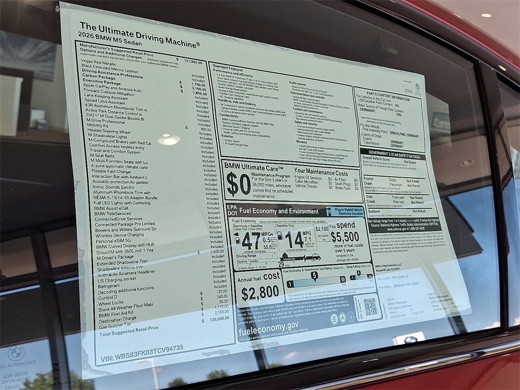 2026 BMW M5 Base Black Leather. Red Metallic