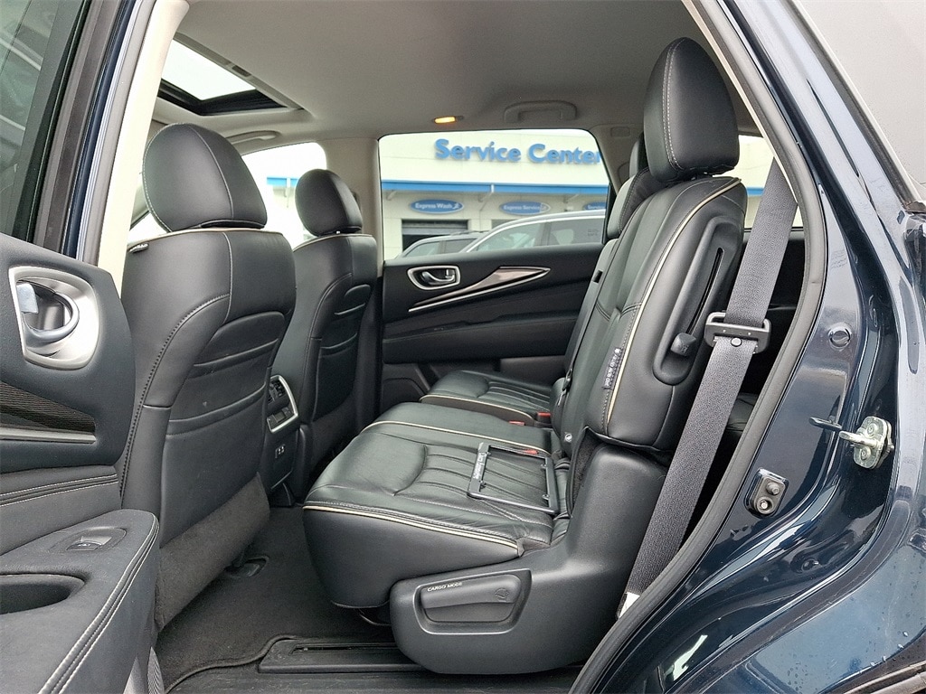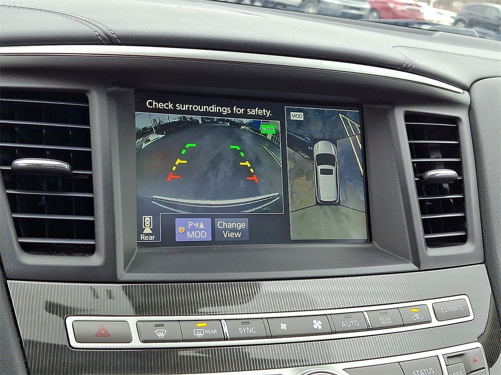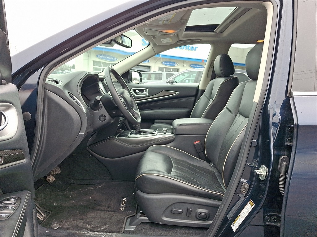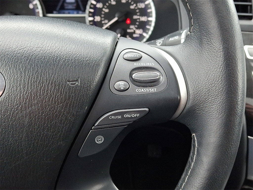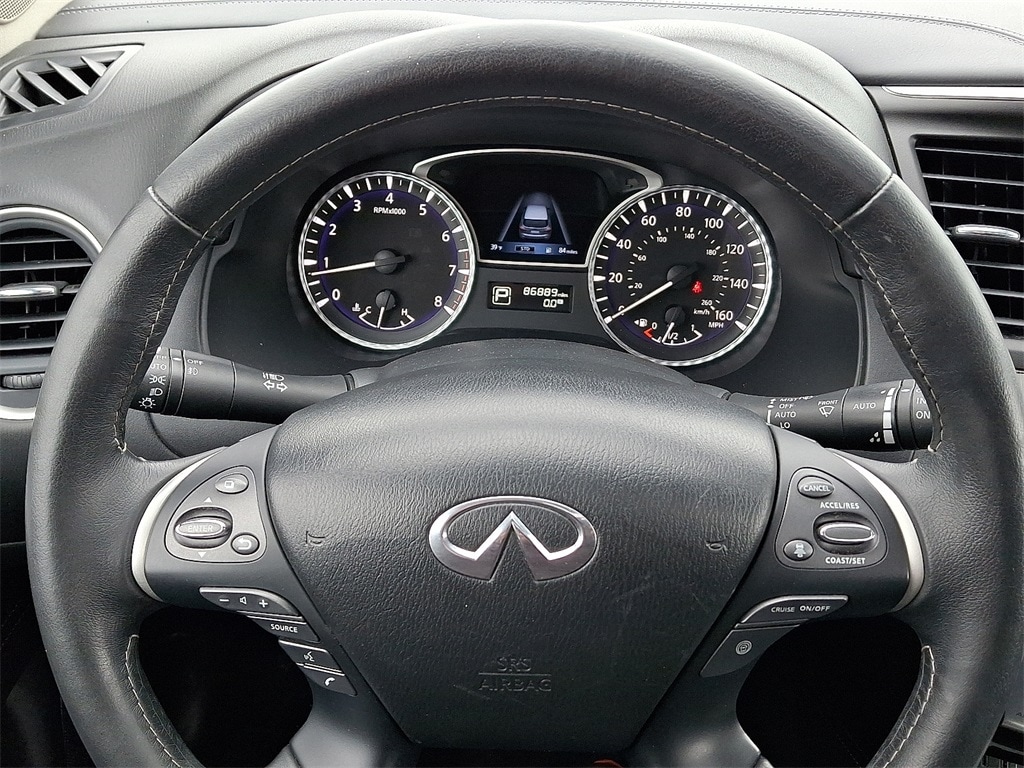 Active Trace Control, Around View Monitor w/Moving Object Detection, Auto Side Dimming Mirrors, Auto-dimming Rear-View mirror, Backup Collision Intervention (BCI), Blind Spot Intervention (BSI), Distance Control Assist, ECO Pedal, Essential Package, Front & Rear Sonar Sensors (2FR/2RR), Front & Rear Sonar Sensors (4FR/4RR), Front dual zone A/C, Heated front seats, High Beam Assist (HBA), Illuminated Kick Plates (IKP), INFINITI InTouch w/Navigation & InTouch Services, Intelligent Cruise Control (Full-Speed Range), Lane Departure Prevention (LDP), Lane Departure Warning System, Leather steering wheel, Leather-Appointed Seat Trim, Leatherette Seat Trim, Memory seat, Power driver seat, Power Liftgate, Power moonroof, Power passenger seat, ProASSIST Package, Rain-Sensing Front Windshield Wipers, Remote keyless entry, Split folding rear seat, Steering wheel memory, Steering wheel mounted audio controls, Traction control, Voice Recognition for Navigation Functions.